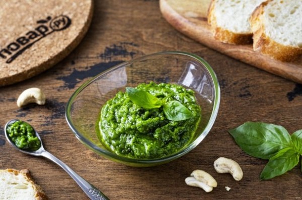 Описание приготовления: Ниже я расскажу подробнее, как приготовить "Песто" с кешью и базиликом. Если хотите более текстурную консистенцию песто, то его можно готовить в комбайне или ступке. Готовый соус хранится