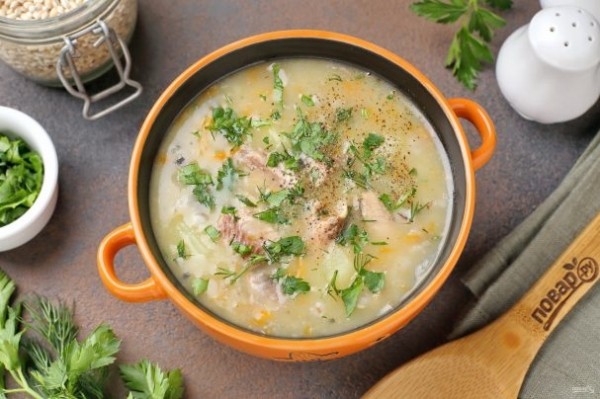 Описание приготовления: Приготовить суп из сайры с перловкой несложно. Сначала отваривается крупа, а затем постепенно вводятся остальные ингредиенты. По желанию можно в зажарку добавить 1-2 ст.л. томатной пасты и любые