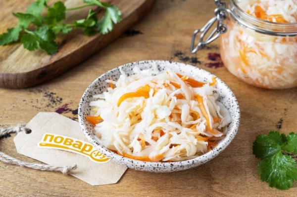 Описание приготовления: Для этого рецепта нужна белокочанная капуста, тонко нашинкованная, она быстро маринуется, получается кисло-сладкая и очень ароматная, благодаря специям. Можно добавить в рецепт сушеный укроп, он даст свой аромат,